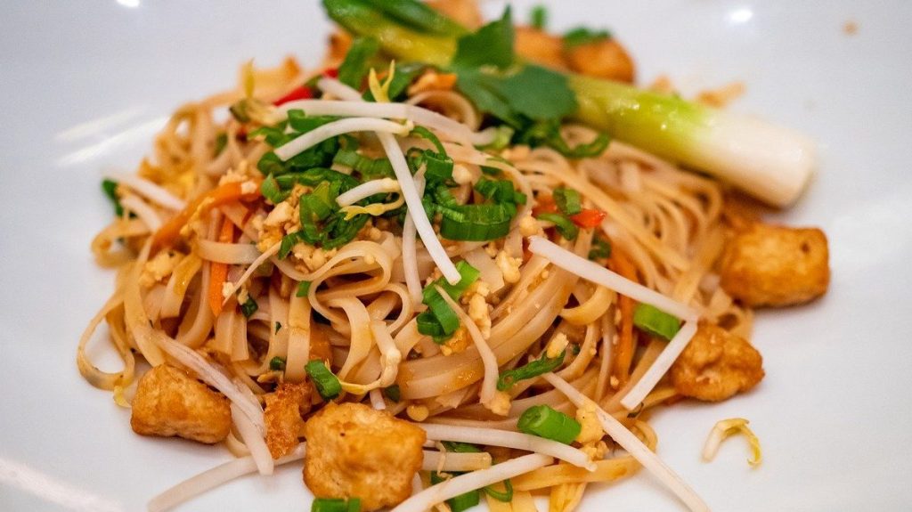 Traditional Thai food is loaded with fish sauce, shrimp paste, and egg — all of which can be found ubiquitously in virtually every Thai dish. Despite this, Thai cuisine doesn’t treat meat as an absolutely necessary part of most dishes and many Thai dishes can be easily prepared without the fish sauce, shrimp paste or egg. Meat in a dish is typically replaced with tofu or veggies.
