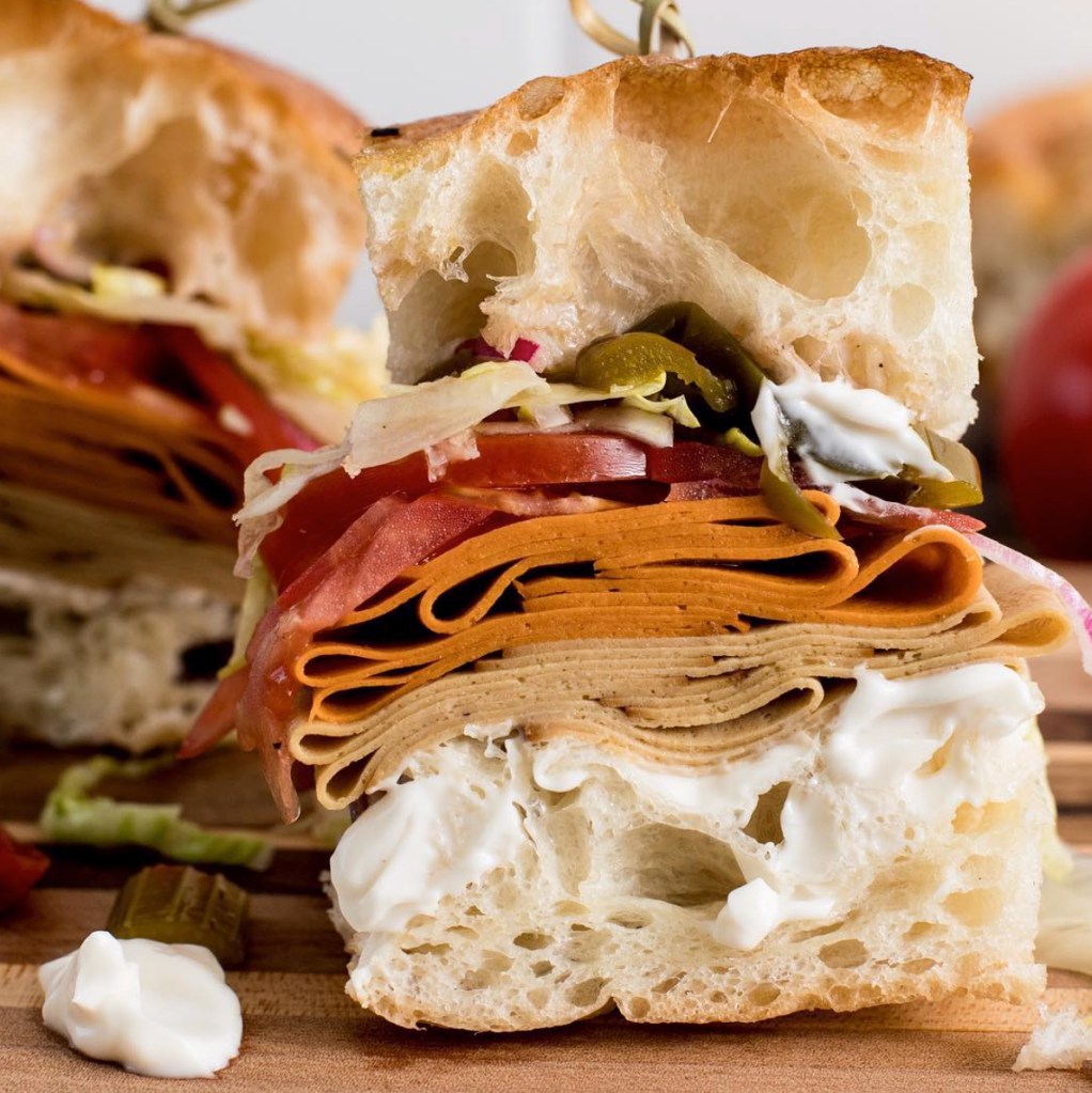 Tofurky is a widely available, totally vegan (and vegan-owned) company offering an extensive variety of non-GMO vegan meats.